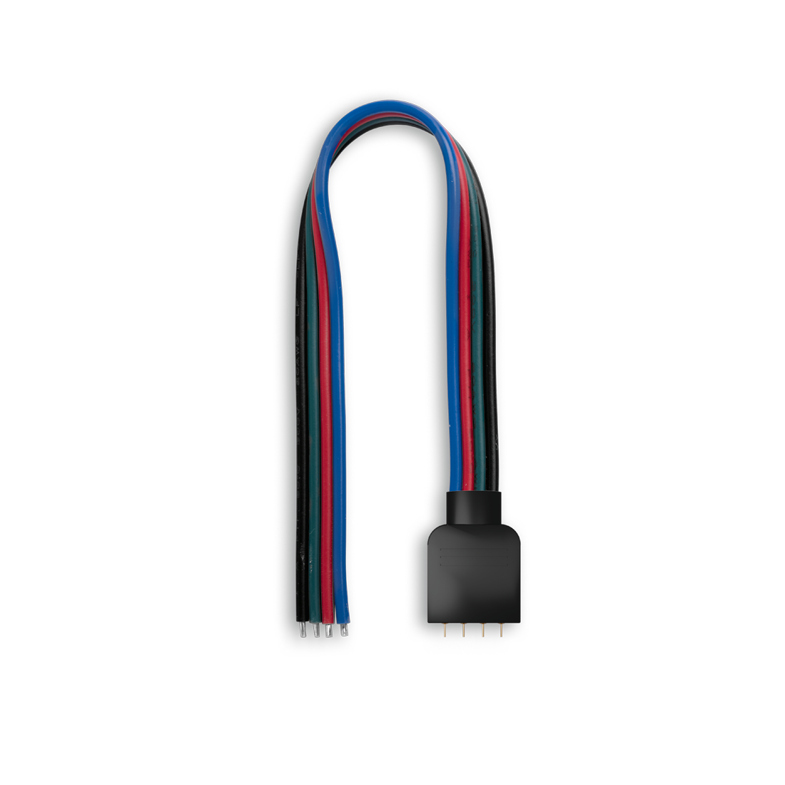 Одиночный коннектор с проводом 15см для подключения через контроллер к открытым светодиодным лентам RGB шириной 10мм. Материал - пластик. Максимальный допустимый ток 3А, напряжение до 48В.